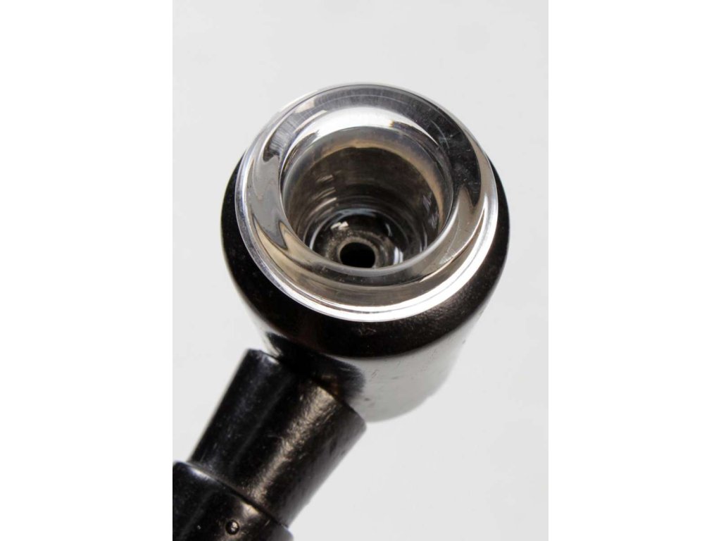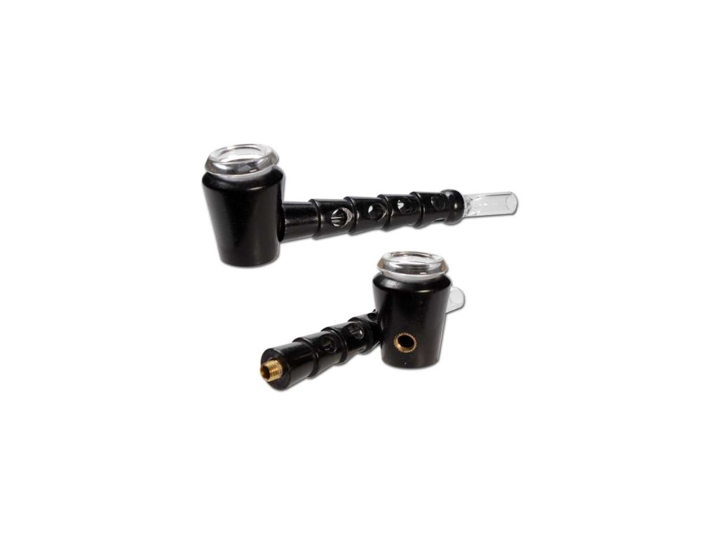 Tato dvoudílná, rozebíratelná dřevěná dýmka má skleněnou misku, náustek a skleněnou trubici. Misku lze pro lepší čištění odšroubovat.
